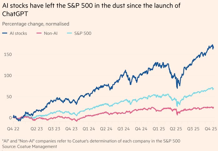 📊 Las ocho mayores tecnológicas generan el 60% de las ganancias del S&P 500 desde abril de 2025. 👉 El peso de los gigantes digitales vuelve a niveles récord, concentrando el crecimiento del mercado en un 8 empresas. Wall Street también depende de la IA y la nube (para bien y para mal).