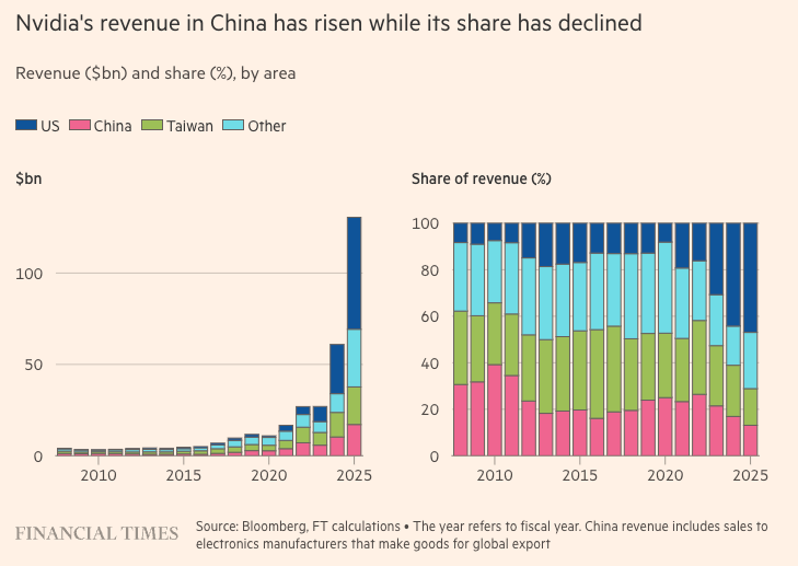 🇨🇳 Nvidia en China. El Financial Times analiza su futuro en un mercado crítico donde emergen rivales como Huawei y Cambricon. 👉 Ten en cuenta las restricciones de la administración Trump.