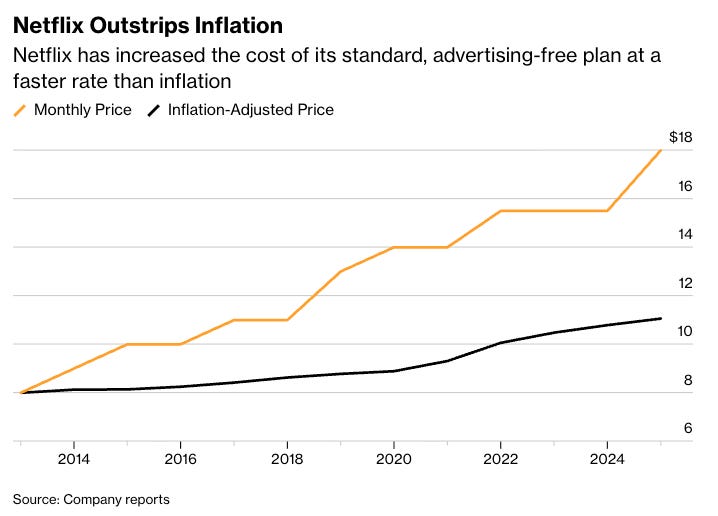 📺 Netflix se siente cómoda subiendo precios porque los suscriptores i) pueden bajar al producto barato con anuncios y ii) ven muchísimo contenido por el precio que pagan. 👉 En 2026, prevén duplicar los 1.500M$ de ingresos publicitarios de 2025.