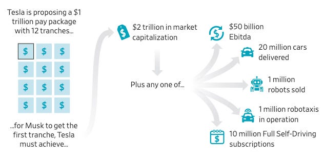 🚀 Musk, contrato de 1T$. Los accionistas de Tesla aprueban el mayor paquete salarial de la historia: 1T$ condicionados a que la compañía alcance 8,5T$ de capitalización en 10 años.