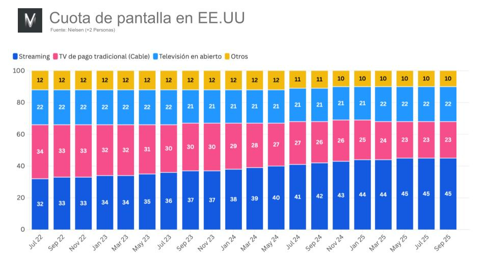 👉 Ese crecimiento llegó directamente a costa de la televisión por cable, que cayó del 26% al 22%.