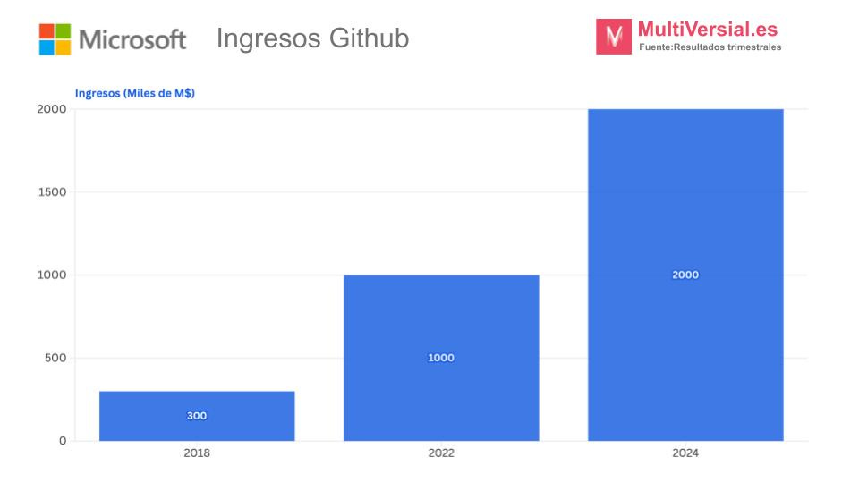 📈 GitHub Copilot ya superó los 500M$ en ingresos en 2024. 👉 Los ingresos totales de Github serían unos 2.000M$. Recuerda que Microsoft compró GitHub por 7.500M$ en 2018 (barato le ha salido).