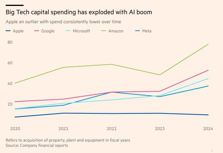 👉 Recuerda que Apple no ha invertido en centros de computación ni en la moda de AWS / Azure / Google Cloud, ni ahora con la IA.