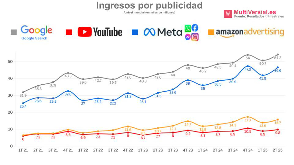 📣 Te cuento. Mucho cuidado porque en el Q2 de 2025, Amazon ingresó 15.700M$ por publicidad, lo que equivale al: